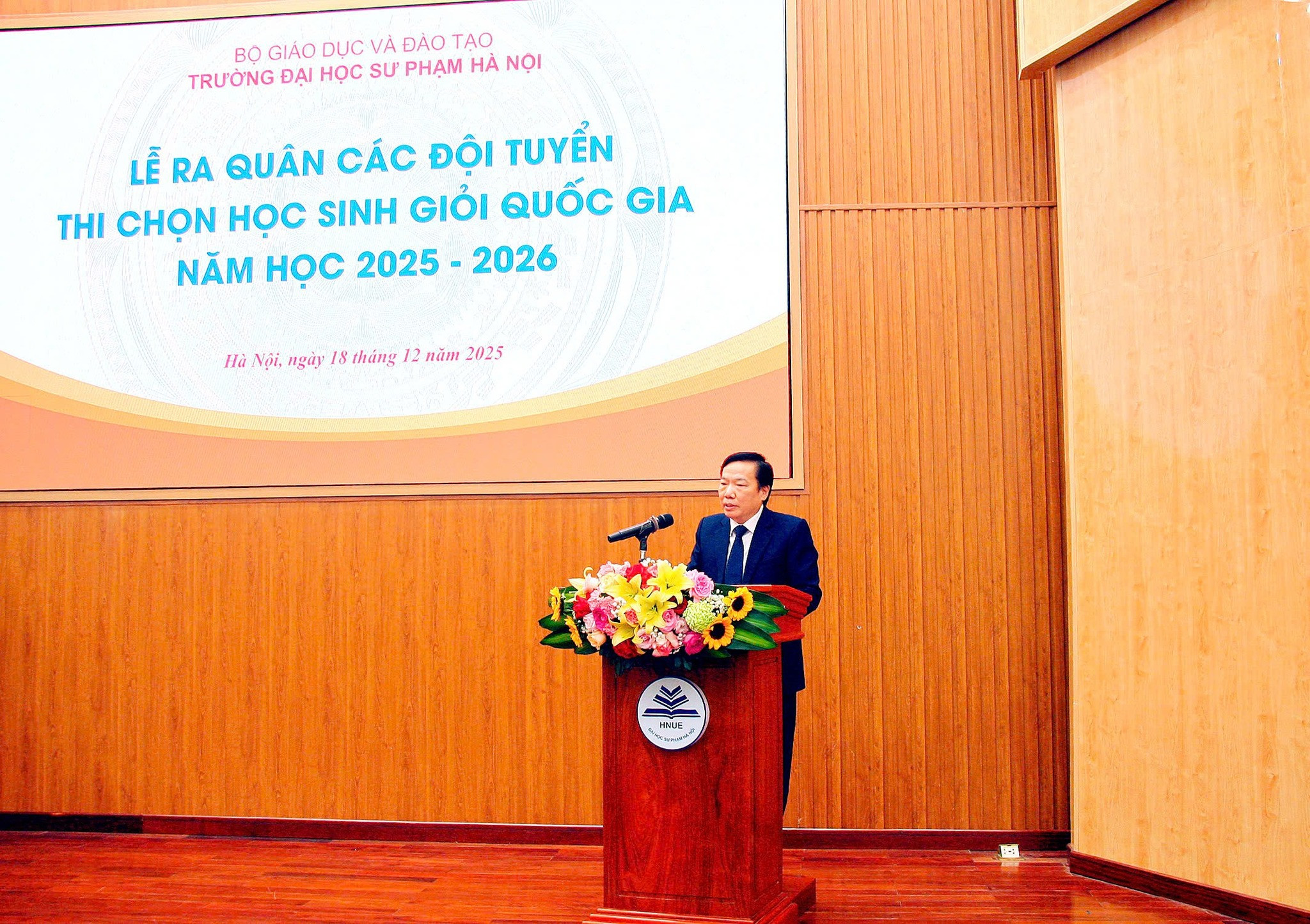 PGS.TS Nguyễn Đức Sơn - Hiệu trưởng Trường Đại học Sư phạm Hà Nội - chúc mừng thành tích các em Trần Duy và Tạ Đức Anh đạt được tại kỳ thi Olympic Toán quốc tế năm 2024. Các em đã nỗ lực vượt qua những thử thách để đạt được kết quả đáng tự hào, thể hiện trí tuệ của học sinh chuyên Sư phạm. Mong các em tiếp tục thể hiện sự nỗ lực đó truyền cho các thế hệ tiếp theo của nhà trường.